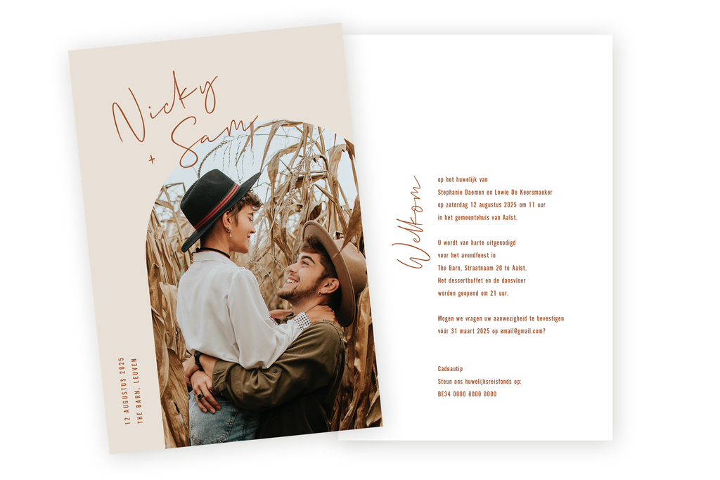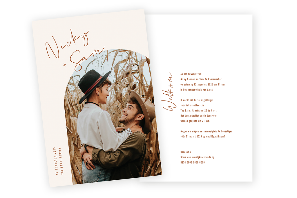 Ander formaat? Dat kan zeker ook. Voor huwelijksuitnodigingen wordt vaak voor bv een grotere kaart gekozen in combinatie met wikkels, ... .