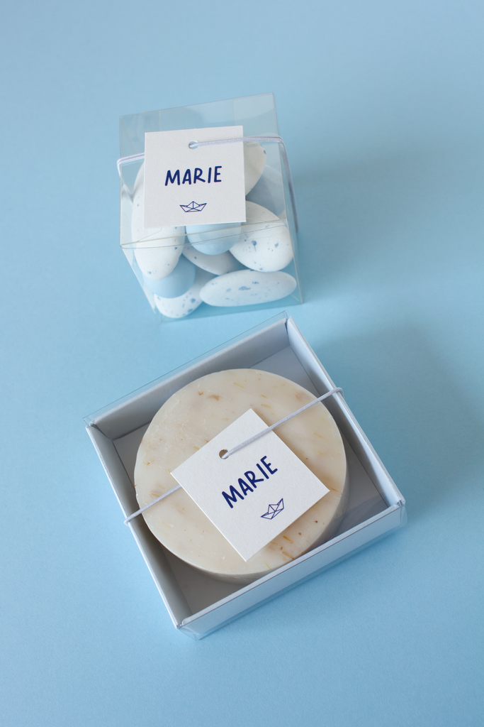 Combineer de doosjes met een vierkanten of ronde sticker van 40 mm, vinylstickers, label, ... .