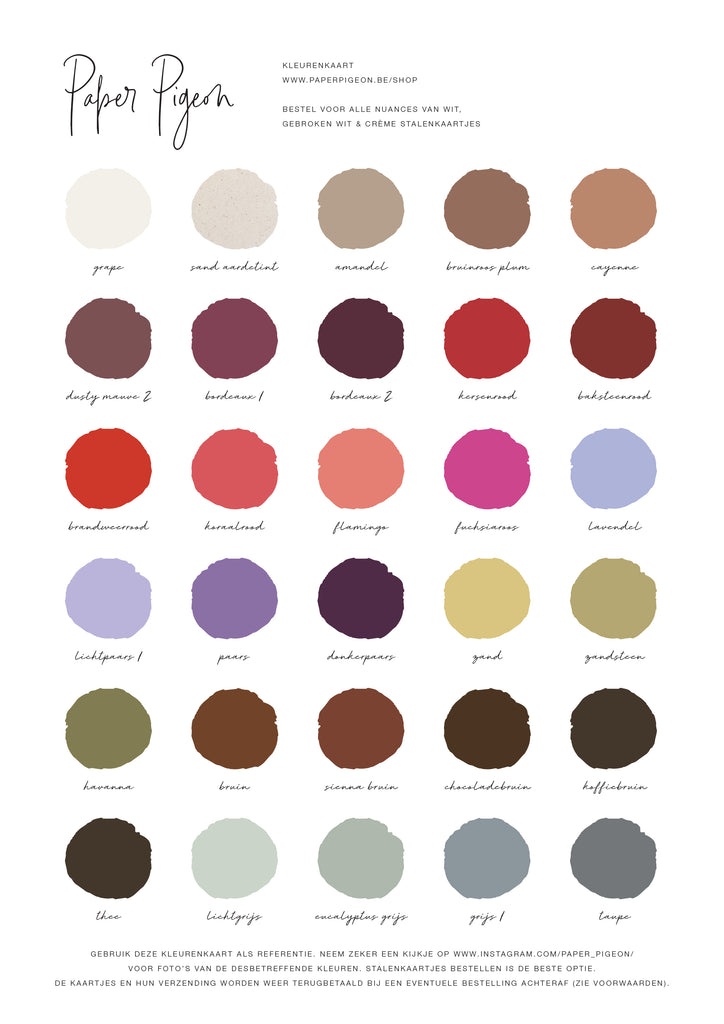 Kleuradvies nodig of niet gevonden wat je zocht? Contacteer ons via het contactformulier of de chatbox onderaan de webshop. Je kan ook stalenkaartjes bestellen. De kaartjes en hun verzending worden weer terugbetaald bij een eventuele bestelling achteraf (zie voorwaarden).