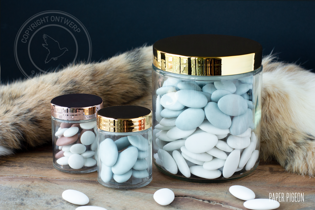 De vermelde prijs is steeds per 6 exemplaren - Bokaaltje (80 ml) in glas met gouden schroefdeksel (geen metaal).