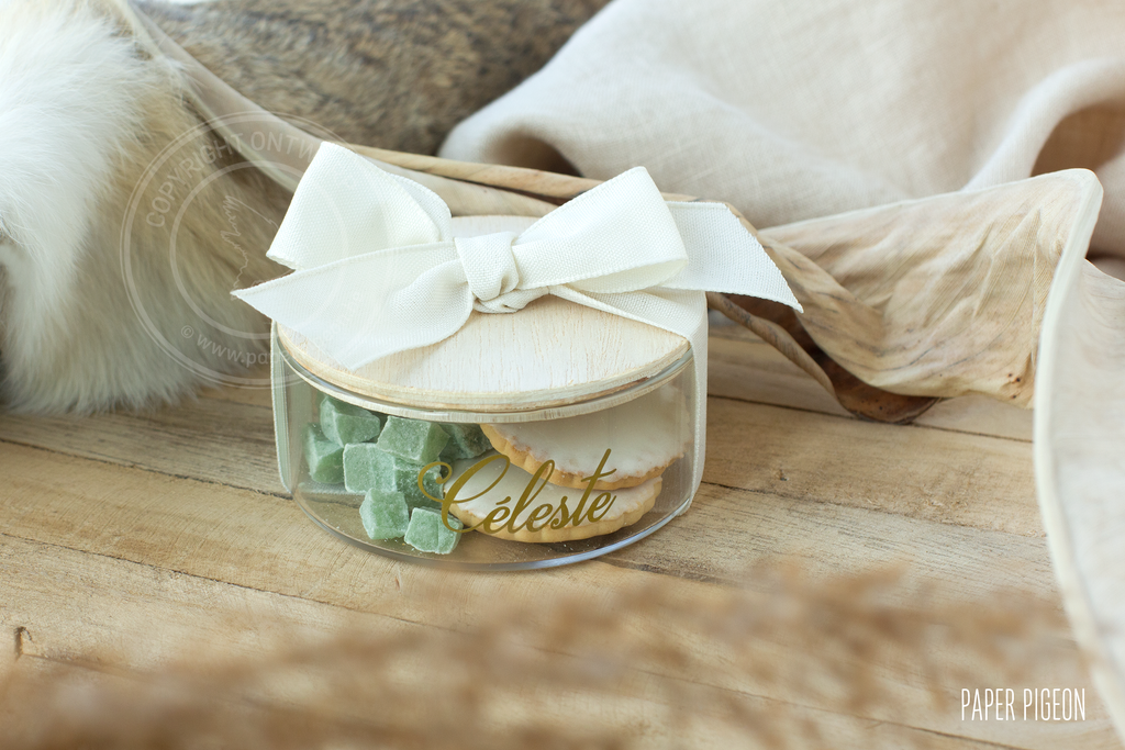 Werk af met een sticker/label of laat het deksel bedrukken of graveren.