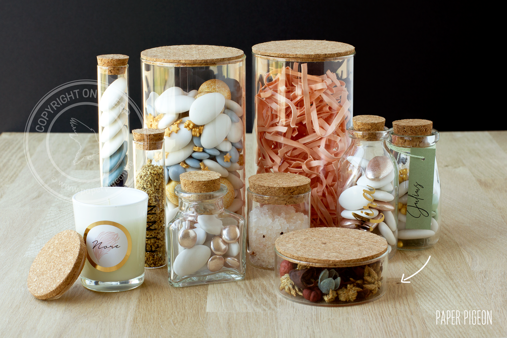 Glazen bokaaltje laag met deksel in kurk of hout - per 6 ex.
