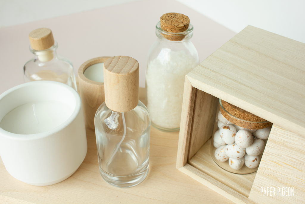 Glazen roomspray flesje met houten dop 50 ml - per 6 ex.