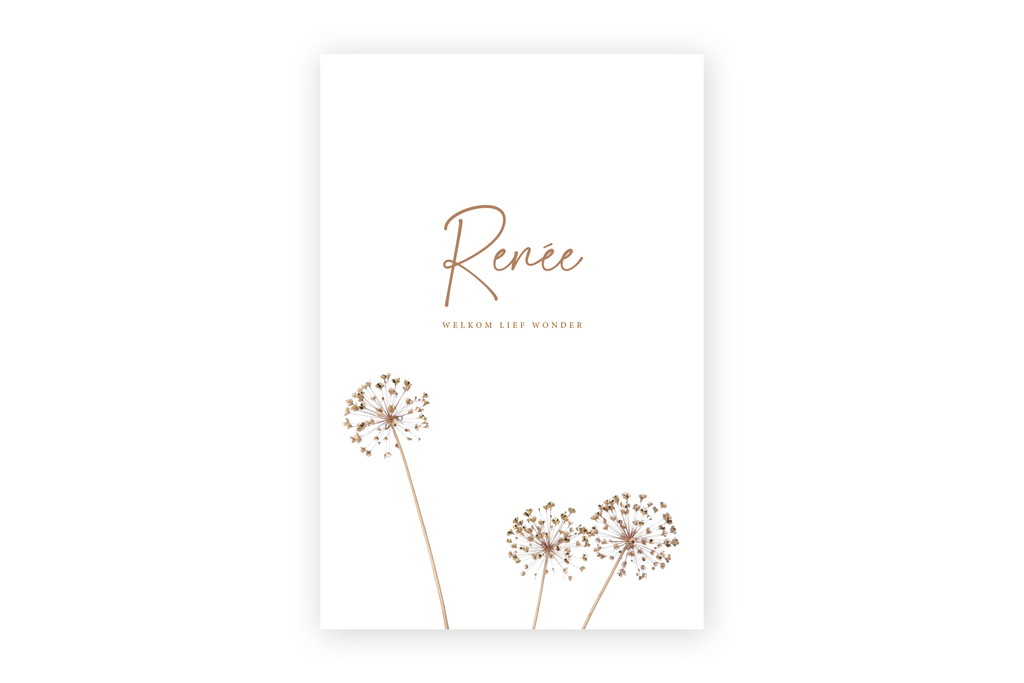 Het kaartje maken we op voorhand helemaal klaar met jullie tekst, wensen, … die jullie via mail bezorgen. Vlak na de geboorte bezorgen jullie mij de laatste gegevens 'gewicht, grootte, …'.