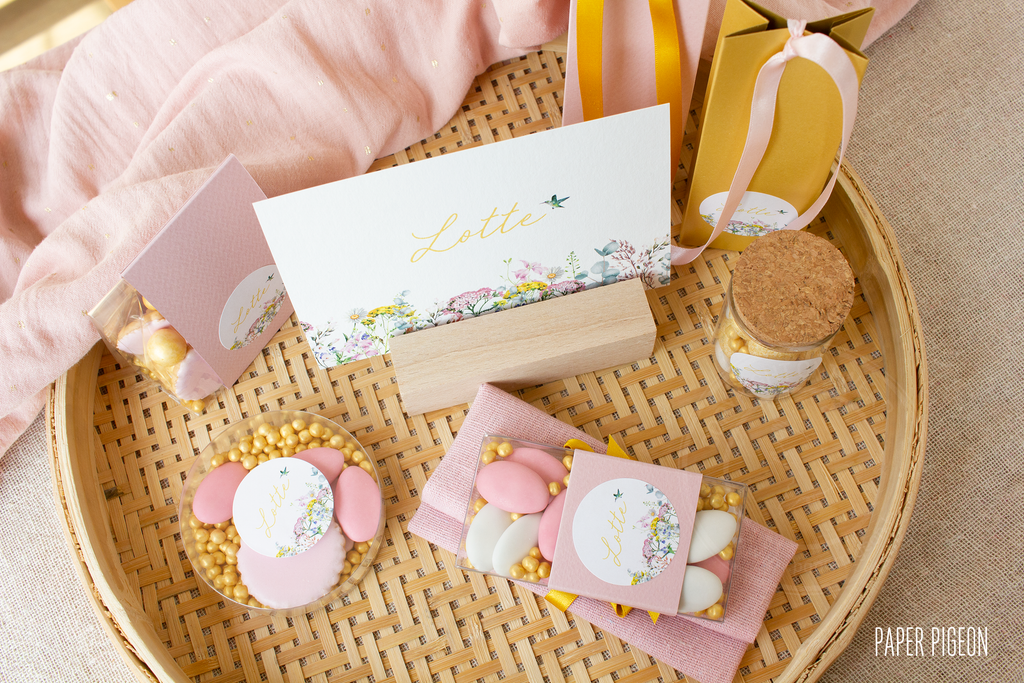 Laat je geboortekaartje deel uitmaken van je doopsuikerpresentatie of leuk voor achteraf op de kast - zonder gravure. (beschilderbaar)