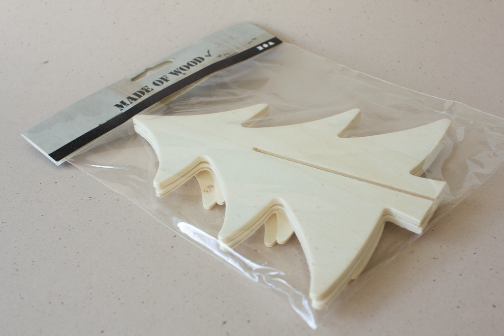 Set van 2 houten dennenbomen. Elke boom bestaat uit 2 delen om in elkaar te schuiven. Hout kan geverfd worden. Leuk bij een dennenbomen thema en doopsuikerdoosjes in dennengroen, groeipapier, ... .