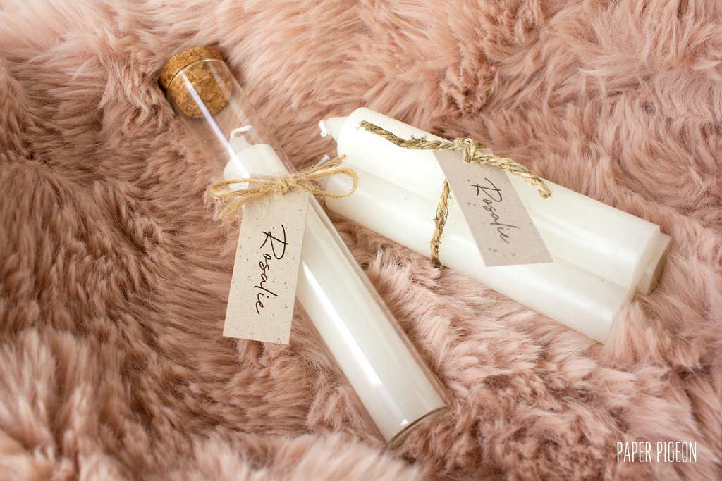 Vierkante of rechthoekige labels op maat. Eventueel voorzien van een klein gaatje (kleine meerprijs 5 euro supplement).