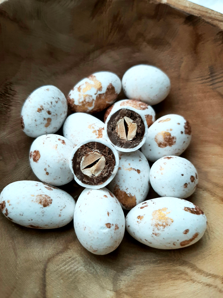 Amandel omhuld met heerlijke chocolade en suiker (en dus geen gewoon amandelboontje) - beschikbaar in verschillende kleuren.