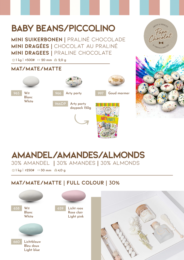Kleuren op een beeldscherm kunnen licht afwijken van de realiteit. Suikerbonen en snoep kunnen niet geruild of geretourneerd worden.