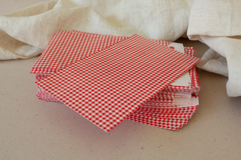 Dan bieden we heel wat mogelijkheden. Koop fluweel, fijne jute en semi transparante stof in wit of gebroken wit en maak zelf buideltjes / zakjes. Of kies voor de kant-en-klare tetradoekjes en linnen in olijfgroen, zijdegroen - eucalyptus, oudroze, amandel of terracotta. Werk af met een bijpassend of mooi contrasterend lint en een (rond) label.