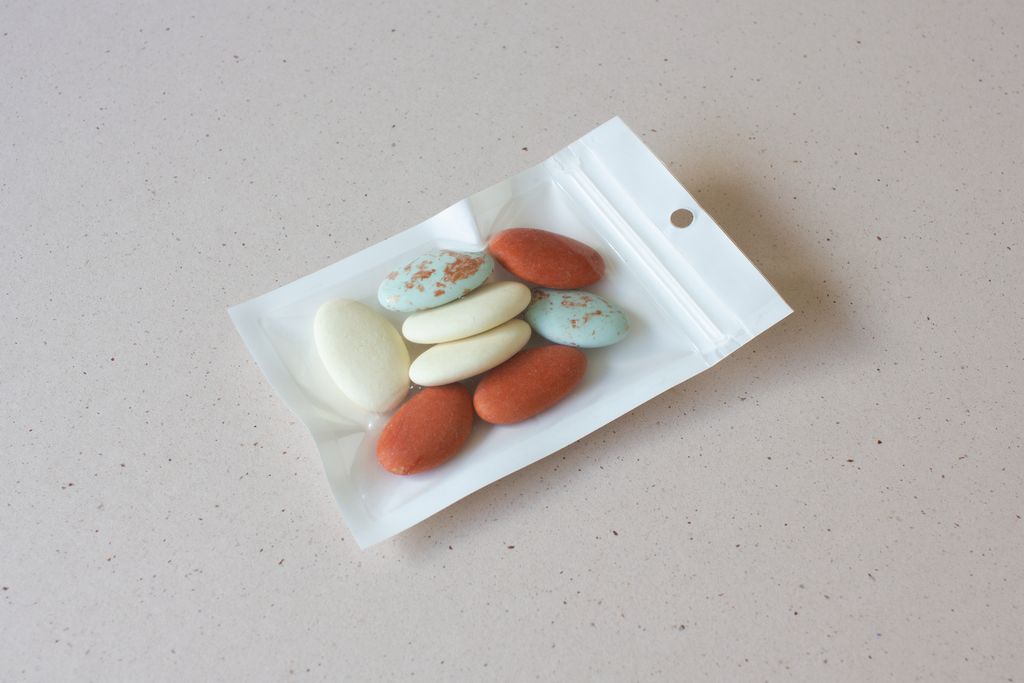 Witte, kleine doopsuikerzakjes met ziplock sluiting - transparante voorkant.