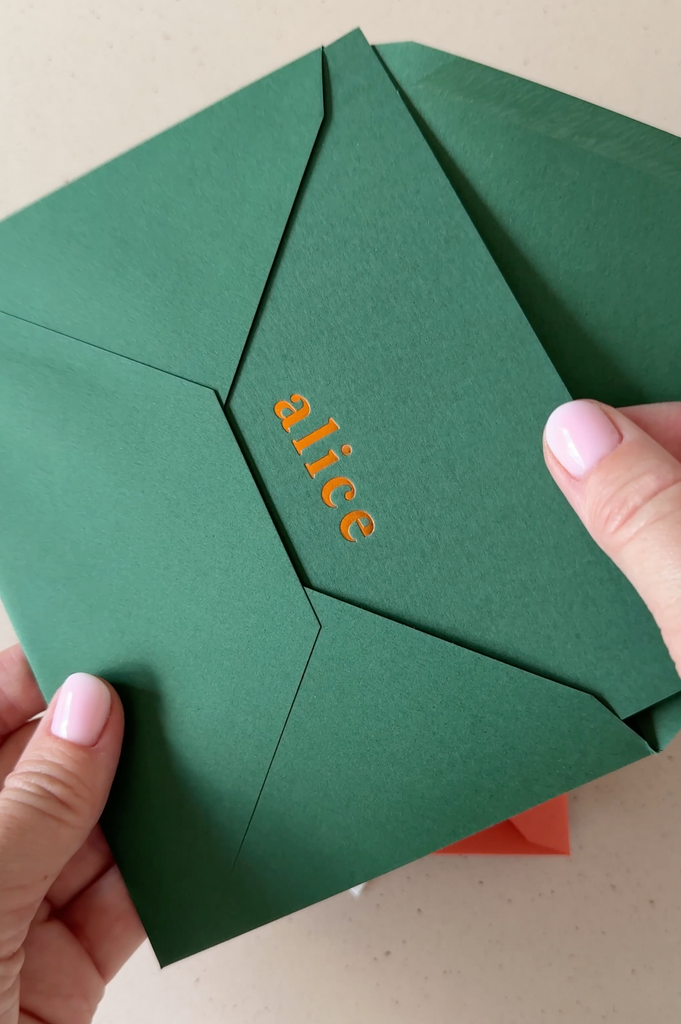 Traditionele koperfolie op een cactusgroene voorkant / digitale bedrukking op een witte achterkant - extra dikke kaart