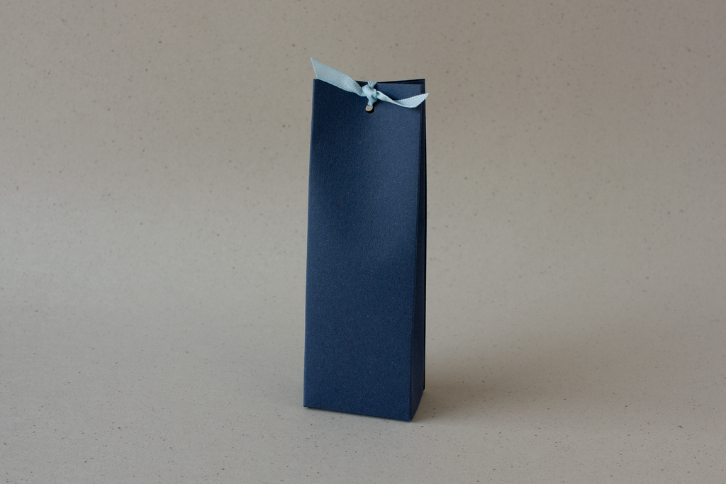Hoge doosjes - marine 2. Er zit een klein gaatje bovenaan het doosje om de zakjes eventueel met een lint of koord te sluiten. Lot van 20 doosjes.